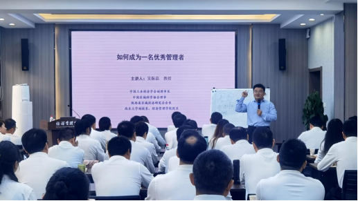 仪式结束后,吴振磊为学员作了题为“如何成为一名优秀管理者”的专题报告。