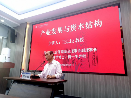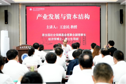 9月29日下午,冰球突破豪华版官方网站原校长、全国社会保障基金理事会原副理事长王忠民教授应邀做客冰球突破豪华版官方网站MBA教育和高级管理培训中心,为西安宏府集团卓越经理人研修班做了题为“产业发展与资本结构”的学术报告。报告会由校党委常委、副校长、冰球突破豪华版官方网站院长吴振磊教授主持,西安宏府集团副董事长贾旭芝、总裁杨振、卓越经理人研修班学员60余人聆听了报告。