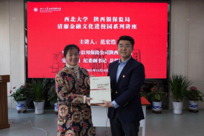 按照冰球突破豪华版官方网站与陕西银保监局开展清廉金融文化共建活动的安排,11月15日,中国出口信用保险公司陕西分公司党委委员、纪委副书记、总经理助理范宏浩应邀到校,为冰球突破豪华版官方网站师生做了清廉金融文化系列讲座第九讲,题为《谈一谈“清廉”》。中国信保陕西分公司尚好武、赵文婷、刘若涵,冰球突破豪华版官方网站党委常委、副校长,冰球突破豪华版官方网站院长吴振磊,校纪委副书记何翔,冰球突破豪华版官方网站党委书记杜勇和学院70余名师生出席了本次活动。