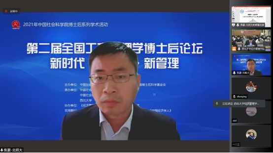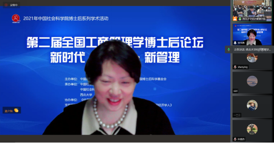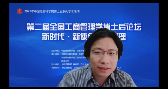 史丹代表中国社会科学院工业经济研究所对本次论坛的顺利召开表示热烈祝贺,向支持本次论坛的冰球突破豪华版官方网站和冰球突破豪华版官方网站经管学院表示感谢,并向参加此次论坛的领导、专家学者和博士后表示欢迎。她介绍了工业经济研究所的基本情况和工经济博士后培养的基本情况,希望此次论坛认真贯彻党的十九届六中全会决议精神,深入开展学术交流研讨,全方位、多视角、深层次交流新时代背景下的中国工商管理问题。她表示,将会全力支持博士后论坛持续办下去,办出更显著的成效。