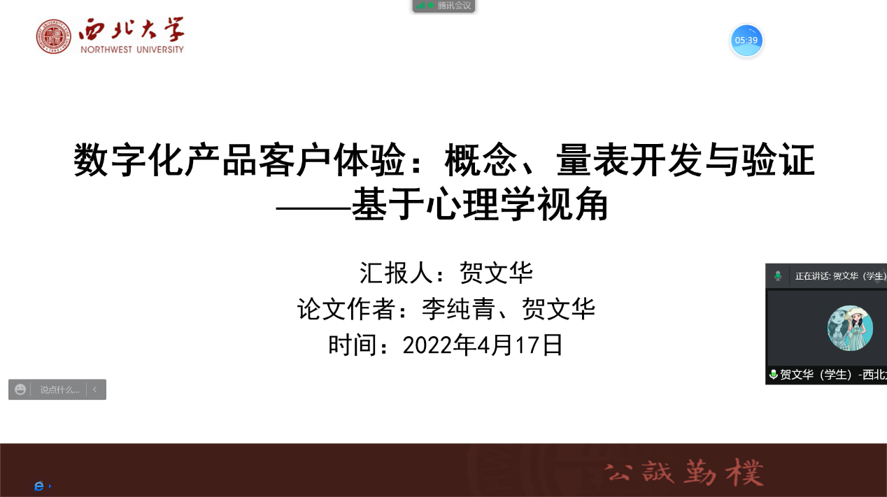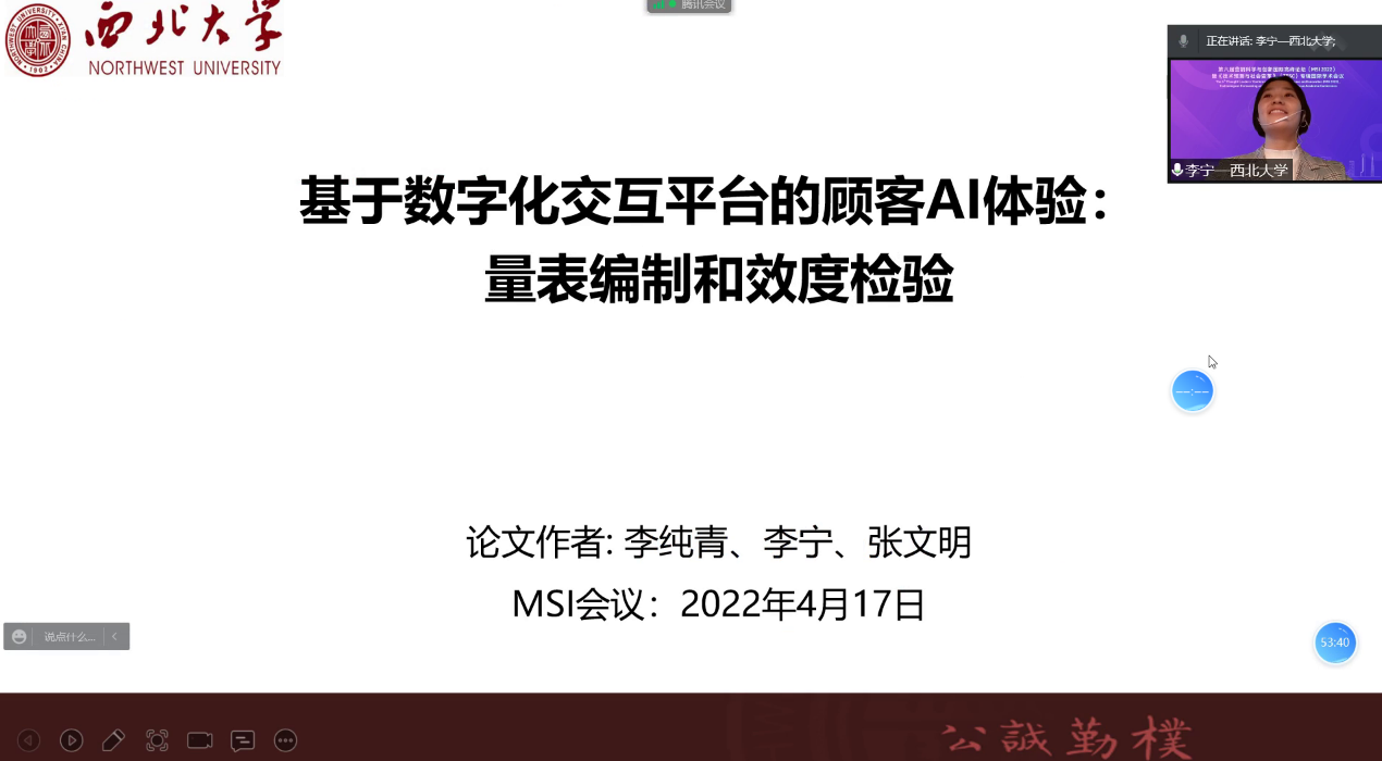 李纯青指导的博士研究生贺文华的论文《数字化产品客户体验:概念、量表开发与验证——基于现象学视角》,以及李纯青和张文明指导的硕士生李宁的论文《基于数字化交互平台的顾客AI体验:量化编制和效度检验》在会上做了汇报。