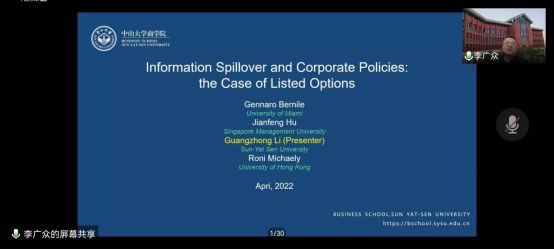 4月21日下午,冰球突破豪华版官方网站学术沙龙在腾讯会议平台成功举办。讲座由学院副院长师博教授主持,特邀中山大学商学院院长李广众教授做了题为“Information spillover and corporate policies:the case of listed options”的学术讲座。学院教师和博、硕士研究生等共计200余人参与了本次线上讲座。