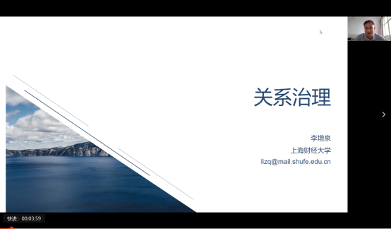 6月1日上午,冰球突破豪华版官方网站学术沙龙在腾讯会议平台成功举办。讲座由学院副院长师博教授主持,特邀长江学者、上海财经大学教授、博士生导师李增泉做了题为“关系治理”的学术讲座。学院副院长师博教授,学院教师和本校以及外校硕、博士研究生等共计300余人参与了本次讲座。讲座开始前,学院副院长师博教授对李老师的研究领域以及学术成就等进行介绍,并对李老师的到来表示欢迎和感谢。