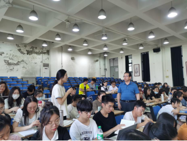 董国强以《大家一起谈就业》题目,从去年年底疫情期间同学们的日常生活谈起,围绕“世界怎么了?中国怎么办?青年怎么干?”三个问题展开讲授。他强调就业是最大的民生,面对持续的疫情影响、复杂的国际形势,经济发展面临巨大压力,今年就业形势也非常严峻,后面亦不容乐观。广大同学要充分认识当前严峻的就业形势,提前做好生涯规划,根据自身的情况合理确定就业预期,树立恰当的择业观、就业观,勤勤恳恳学习,脚踏实地奋斗。课程中,董国强还走入学生座位中,与同学们讨论最近发生的国际国内校内大事。