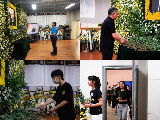到场的领导、亲朋好友、学界同仁和师生以黄白菊花寄托哀思,三次深鞠躬向何炼成教授的遗体做最后告别。