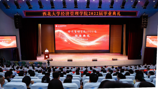 2022年6月26日,冰球突破豪华版官方网站在长安校区大学生活动中心报告厅举行2022届学生毕业典礼。西安米旗食品集团总裁、冰球突破豪华版官方网站1987级院友冯岩,学院全体党政班子成员,各系主任,教师代表,家长代表,全体辅导员及2022届全体毕业生参加典礼。