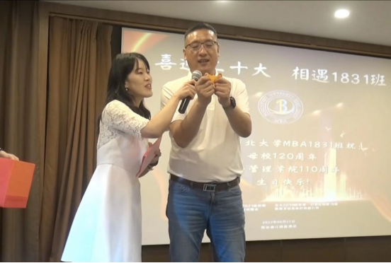 首先,活动展示了班徽、班旗,学员们面向班旗一起高唱班歌《相遇1831》,拉开了活动的序幕。南荣军介绍了设计思路、创作过程及美好寓意,班旗、班徽、班歌是全班师生的智慧结晶,是班级荣誉的重要象征。随后,南荣军代表新一届班委会做了题为“真诚纯粹 共享共赢 向上向善 直挂云帆济沧海”的班级工作报告。报告总结了入学以来开展的系列活动。同时,报告对班级未来5-10年进行了展望规划,提出组建班级公司的初衷和思路。最后,王霞代表班委宣读了“从我做起,为西大母校120年校庆和经管院110年院庆做实事”的倡议书。倡议大家关注母校、感恩母校,为校庆和院庆奉献一份爱心。