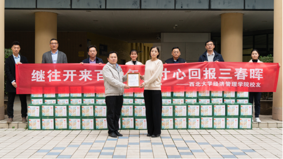 11月2日,2012级MBA校友呼延博、2015级MBA校友张洁向学校捐赠助农产品仪式在长安校区举行。国内合作处副处长燕来,冰球突破豪华版官方网站党委书记杜勇,院长马莉莉,副院长张华岭,MBA/EDP中心主任郭亚军,校友办公室主任吴丰华参加活动。