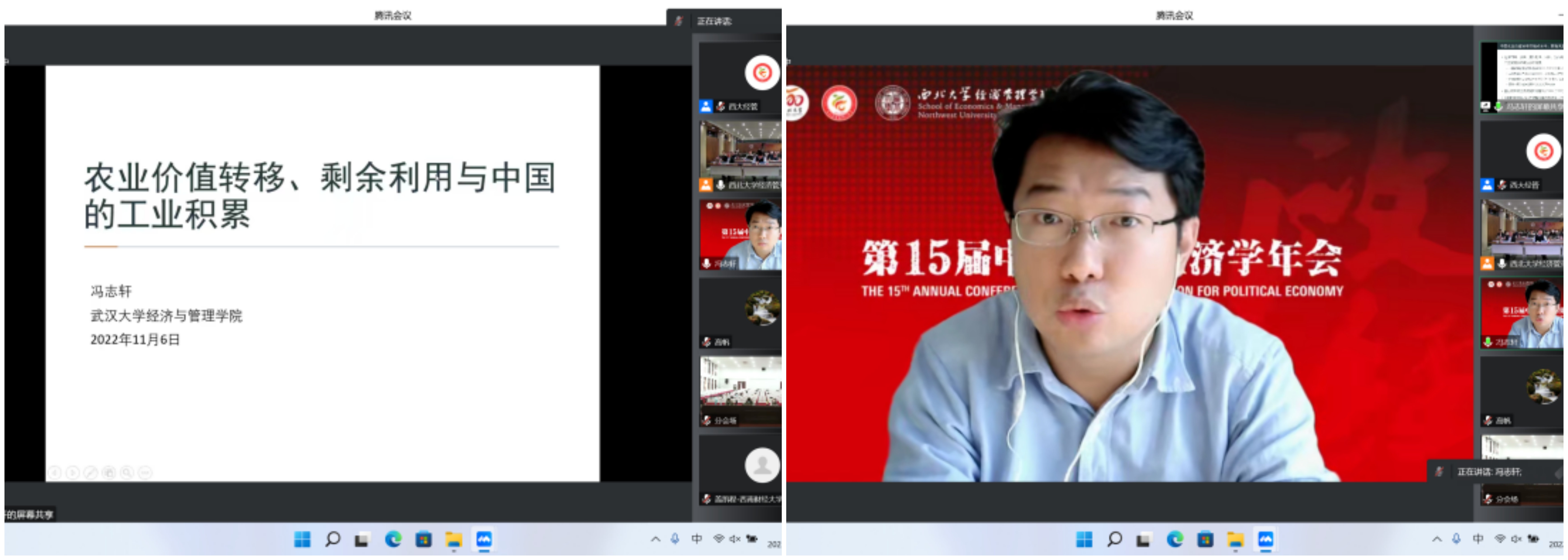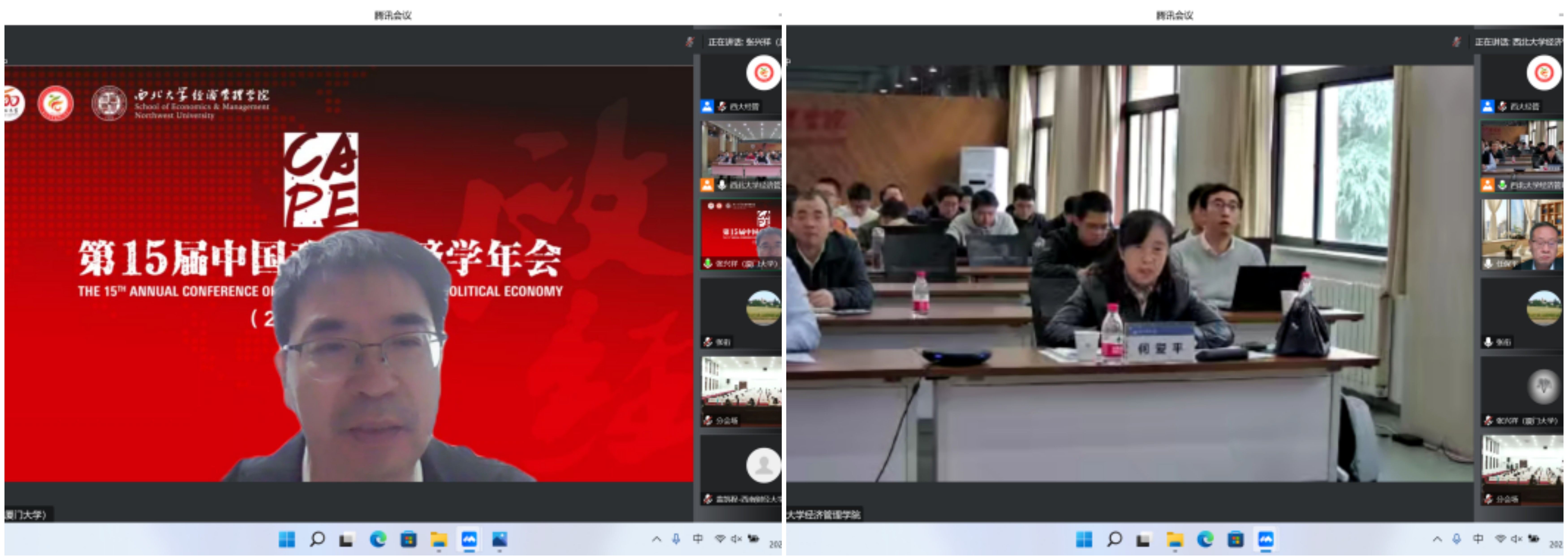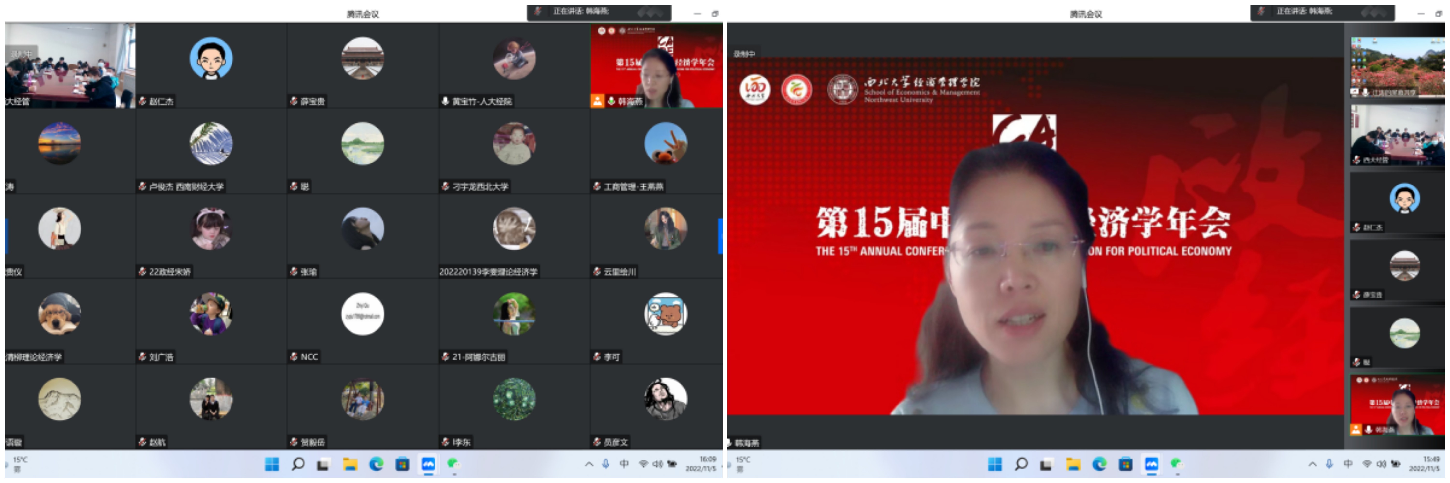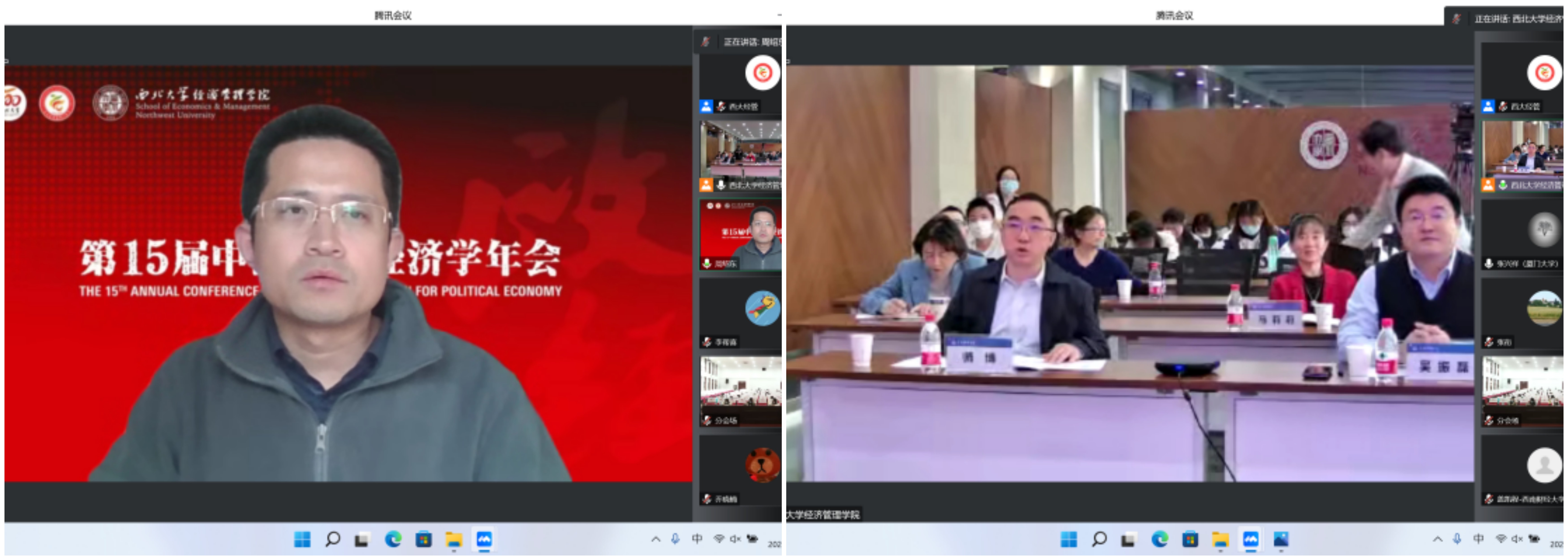 2022年11月5—6日,由中国政治经济学各理事单位共同主办、冰球突破豪华版官方网站承办的第15届中国政治经济学年会以“线上+线下”相结合的方式成功举行。本次会议共进行2场主旨报告、14场主题报告,7个分论坛60余篇论文交流,来自北京大学、清华大学、中国人民大学、中国社会科学院、复旦大学、南开大学、厦门大学、武汉大学、南京大学、四川大学、辽宁大学、西南财经大学、广东外语外贸大学、天津师范大学和冰球突破豪华版官方网站等40余所国内重点高校和科研院所的150余位正式会议嘉宾围绕马克思主义政治经济学、中国特色社会主义政治经济学等重大理论和实践议题,发表观点、开展交流;线下200余名冰球突破豪华版官方网站师生参会,超2000人在线参与论坛,主论坛网络直播超5000人次观看,累计8000余人次参会。