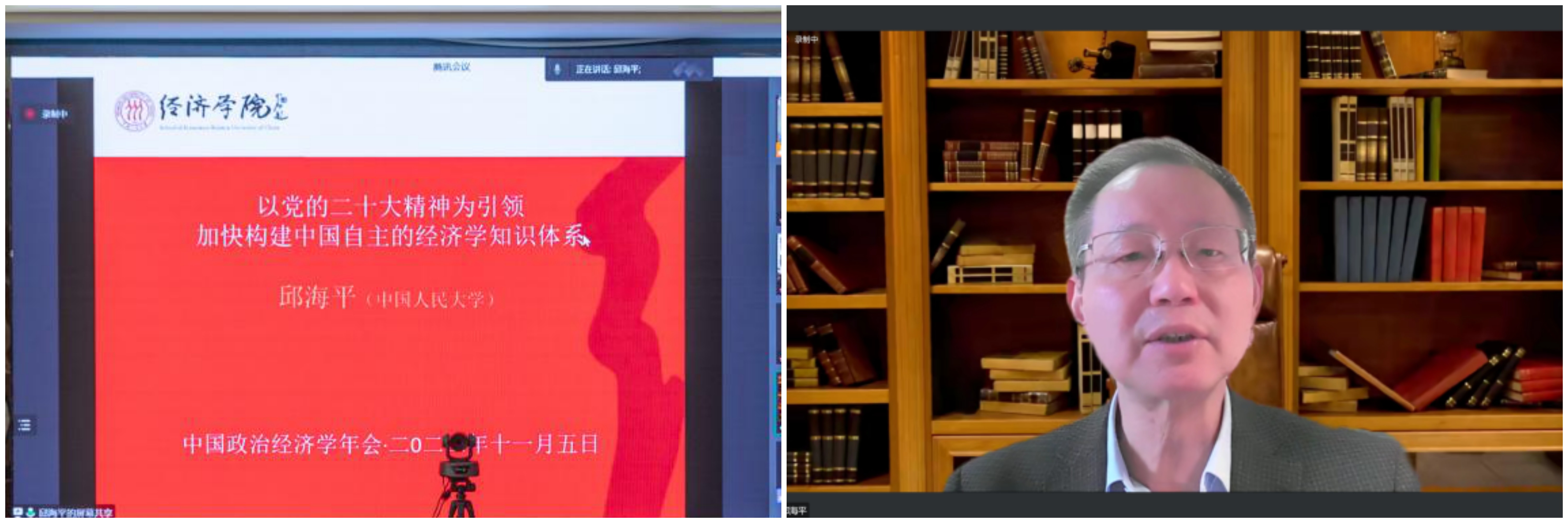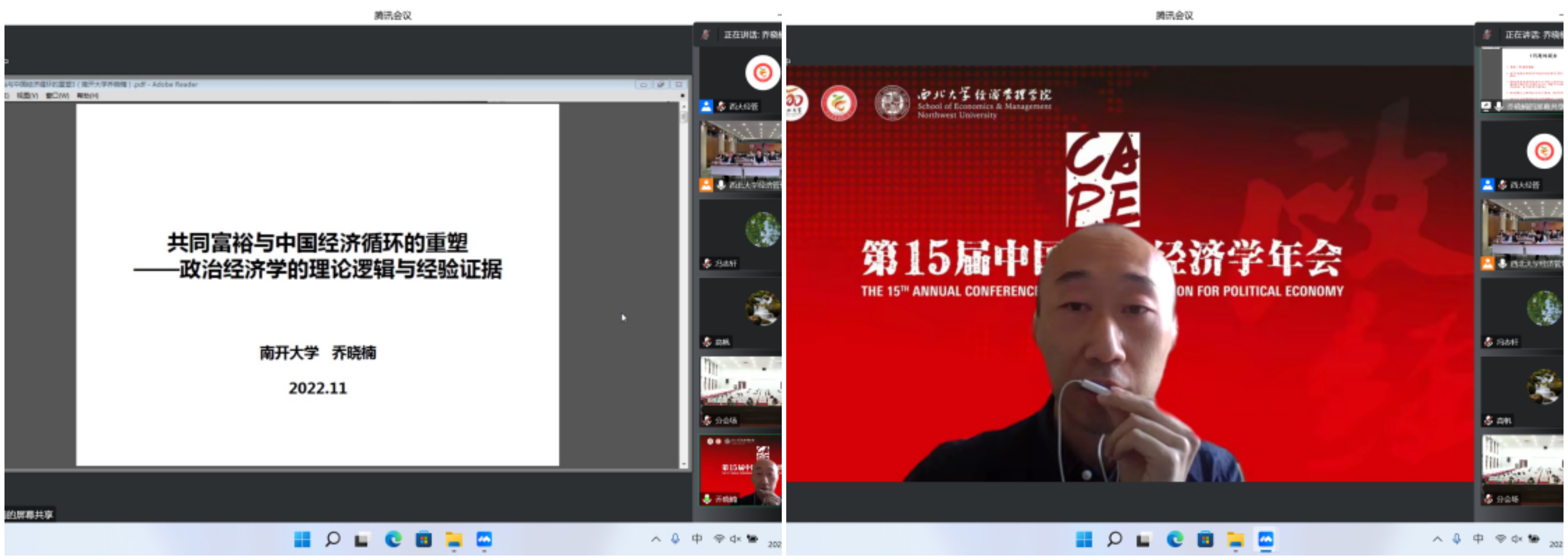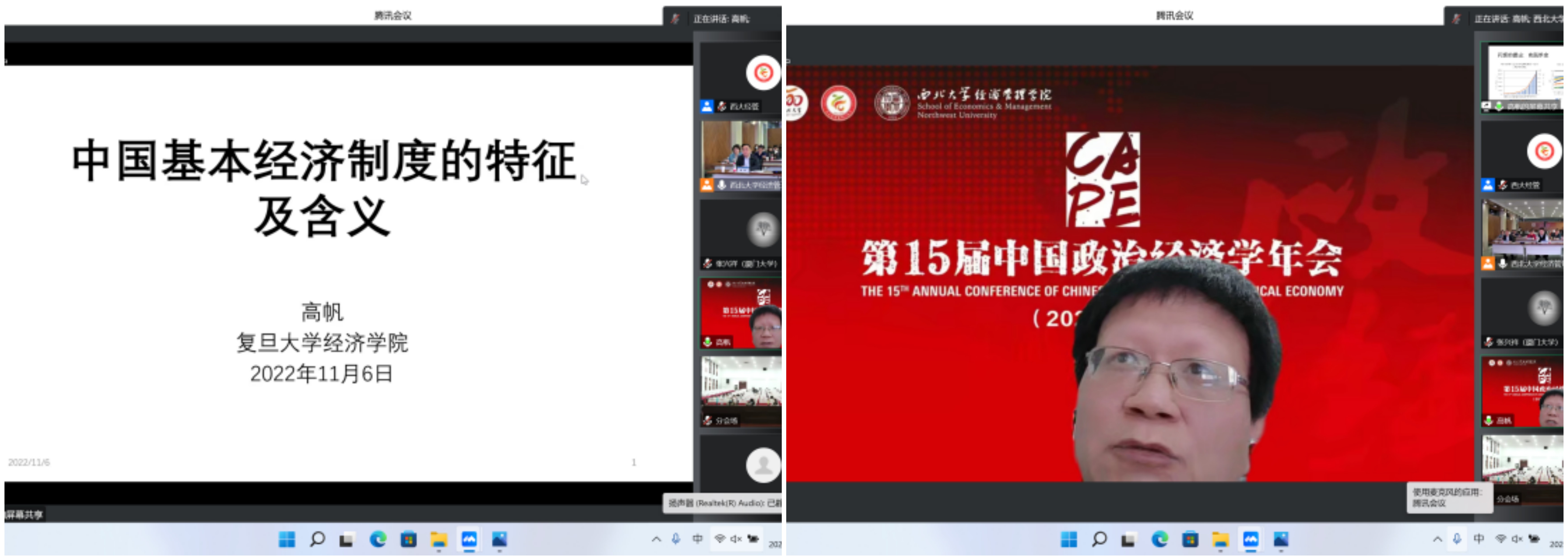 2022年11月5—6日,由中国政治经济学各理事单位共同主办、冰球突破豪华版官方网站承办的第15届中国政治经济学年会以“线上+线下”相结合的方式成功举行。本次会议共进行2场主旨报告、14场主题报告,7个分论坛60余篇论文交流,来自北京大学、清华大学、中国人民大学、中国社会科学院、复旦大学、南开大学、厦门大学、武汉大学、南京大学、四川大学、辽宁大学、西南财经大学、广东外语外贸大学、天津师范大学和冰球突破豪华版官方网站等40余所国内重点高校和科研院所的150余位正式会议嘉宾围绕马克思主义政治经济学、中国特色社会主义政治经济学等重大理论和实践议题,发表观点、开展交流;线下200余名冰球突破豪华版官方网站师生参会,超2000人在线参与论坛,主论坛网络直播超5000人次观看,累计8000余人次参会。