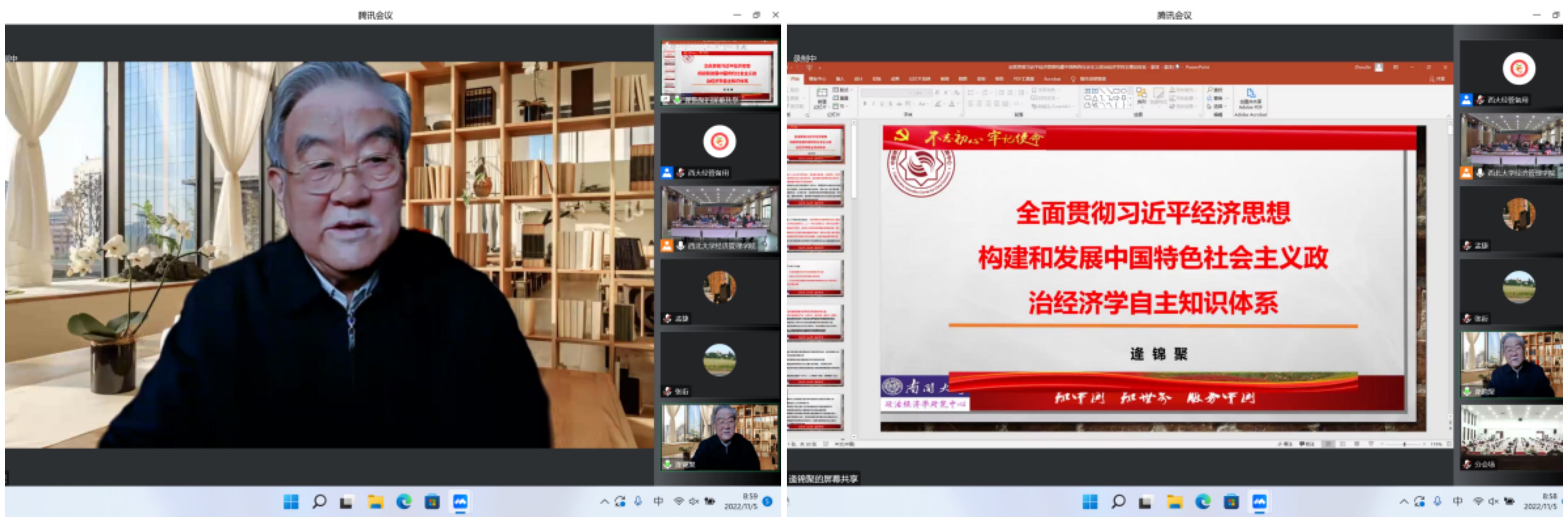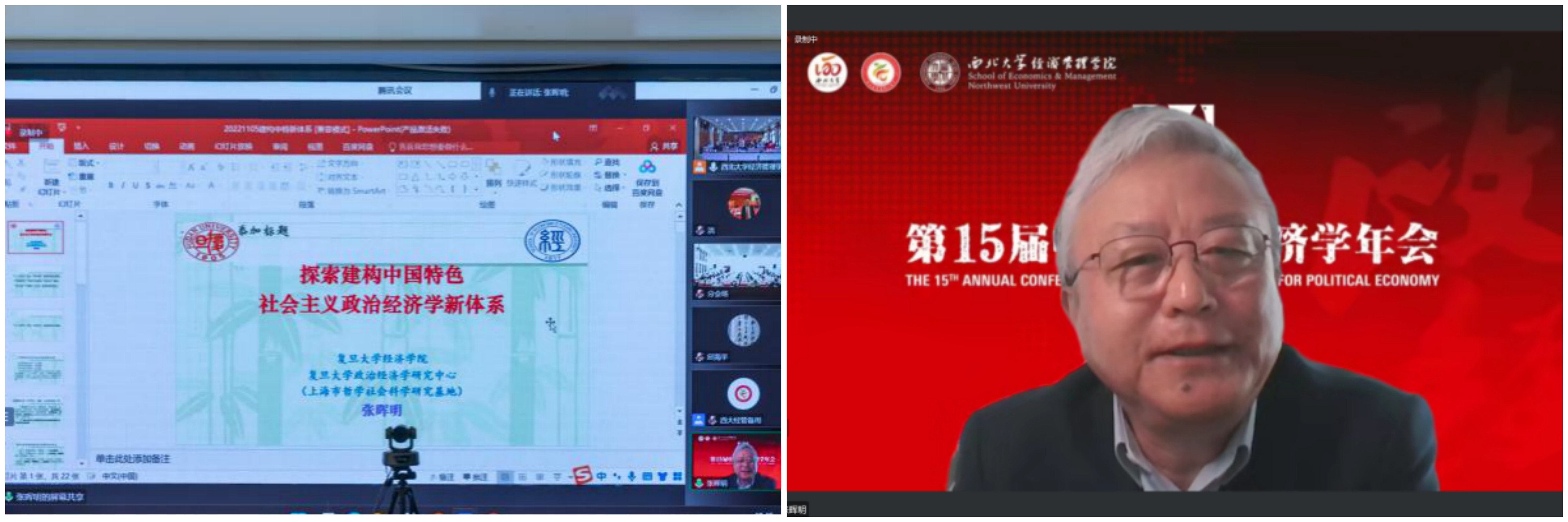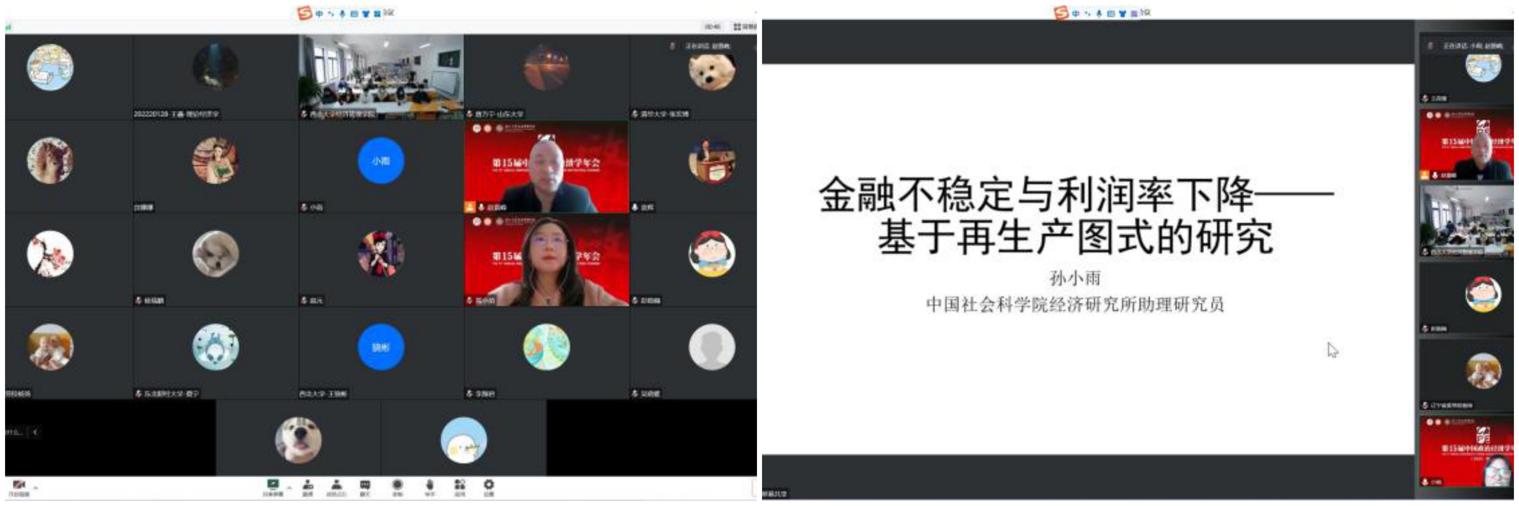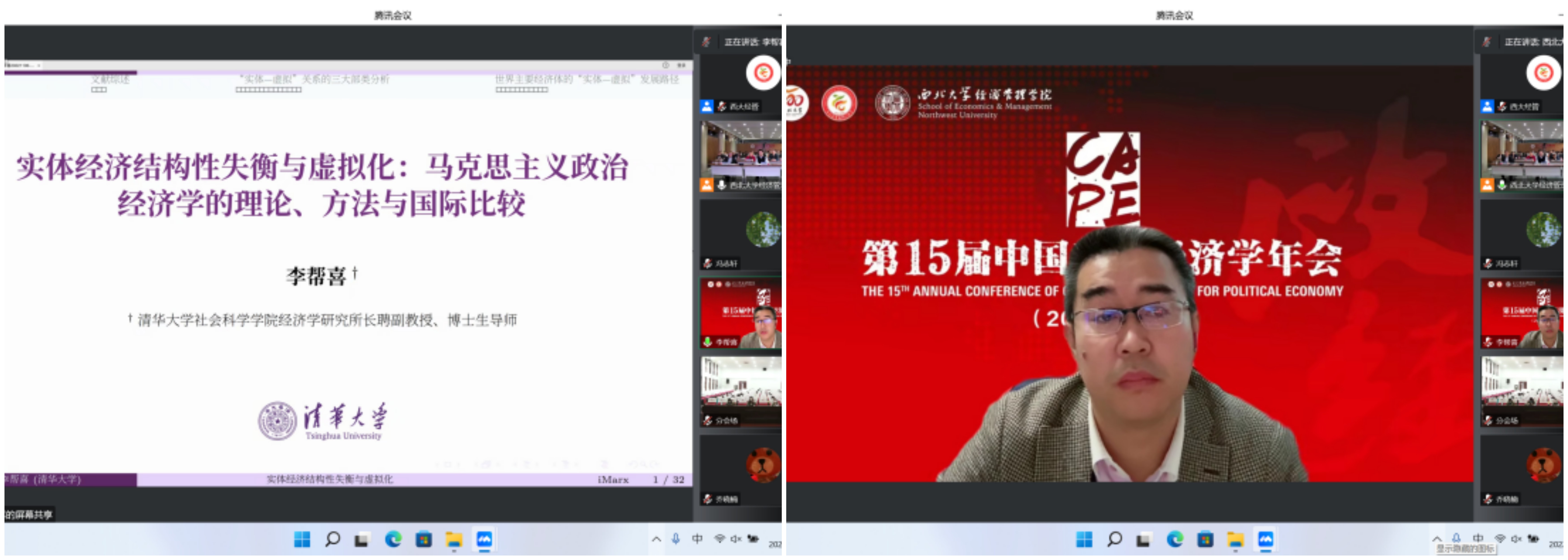 2022年11月5—6日,由中国政治经济学各理事单位共同主办、冰球突破豪华版官方网站承办的第15届中国政治经济学年会以“线上+线下”相结合的方式成功举行。本次会议共进行2场主旨报告、14场主题报告,7个分论坛60余篇论文交流,来自北京大学、清华大学、中国人民大学、中国社会科学院、复旦大学、南开大学、厦门大学、武汉大学、南京大学、四川大学、辽宁大学、西南财经大学、广东外语外贸大学、天津师范大学和冰球突破豪华版官方网站等40余所国内重点高校和科研院所的150余位正式会议嘉宾围绕马克思主义政治经济学、中国特色社会主义政治经济学等重大理论和实践议题,发表观点、开展交流;线下200余名冰球突破豪华版官方网站师生参会,超2000人在线参与论坛,主论坛网络直播超5000人次观看,累计8000余人次参会。