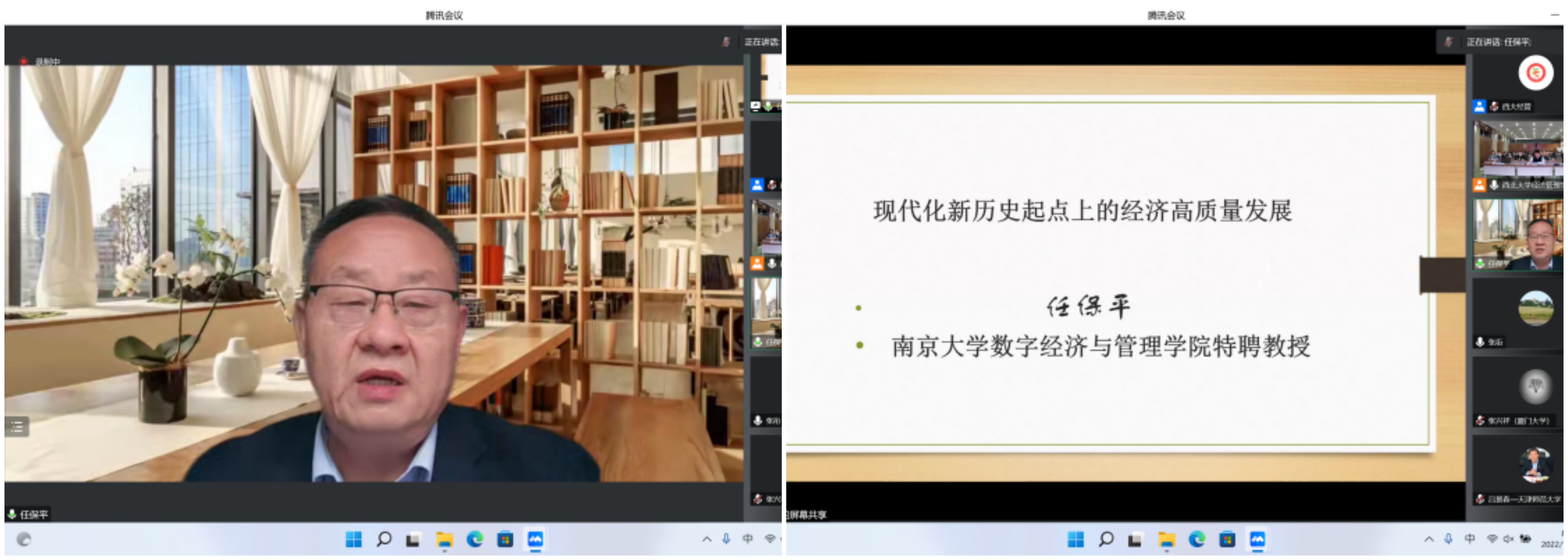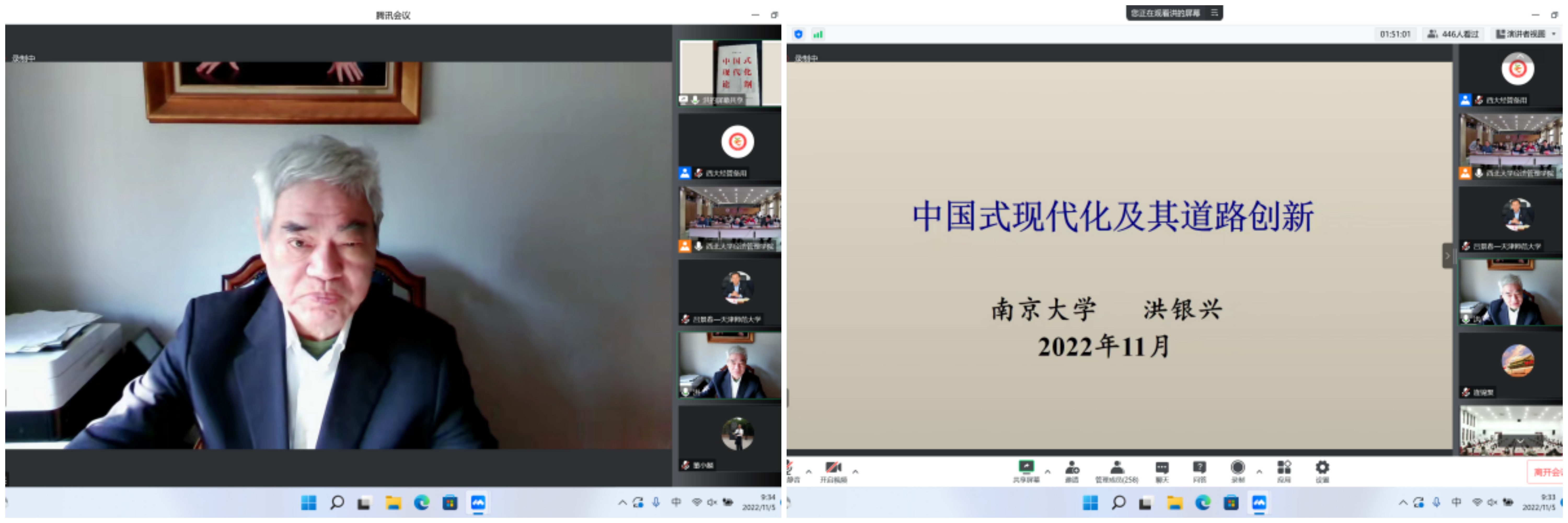 11月5日上午,年会开幕式上,冰球突破豪华版官方网站校长郭立宏教授、本届年会主席冰球突破豪华版官方网站白永秀教授分别致辞。开幕式后的主旨演讲阶段,中国特色社会主义经济建设协同创新中心主任、原南开大学副校长逄锦聚教授做了题为《全面贯彻习近平经济思想构建中国特色社会主义政治经济学自主理论体系》的报告,南京大学文科资深教授、原南京大学党委书记洪银兴教授做了题为《中国式现代化及其道路创新》的报告。冰球突破豪华版官方网站副校长吴振磊教授主持开幕式和主旨演讲。