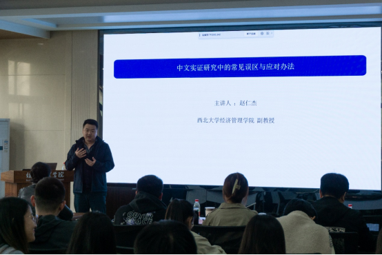 在交流讨论环节,赵仁杰副教授与参会研究生热烈讨论,对于大家提出的学术问题,如中介效应模型的使用等,赵仁杰副教授给予了详细的回答。通过此次讲座,同学们对中文实证研究中可能存在的误区有了更加清晰的认识,对于如何规避误区有了更加精准的方法。