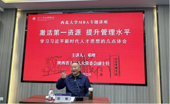 2023年4月22日下午,冰球突破豪华版官方网站特邀陕西省十届人大常委会副主任邓理为MBA学生作题为《激活第一资源 提升管理能力——学习习近平新时代人才思想的几点体会》专题讲座。讲座由学院党委书记杜勇主持。
