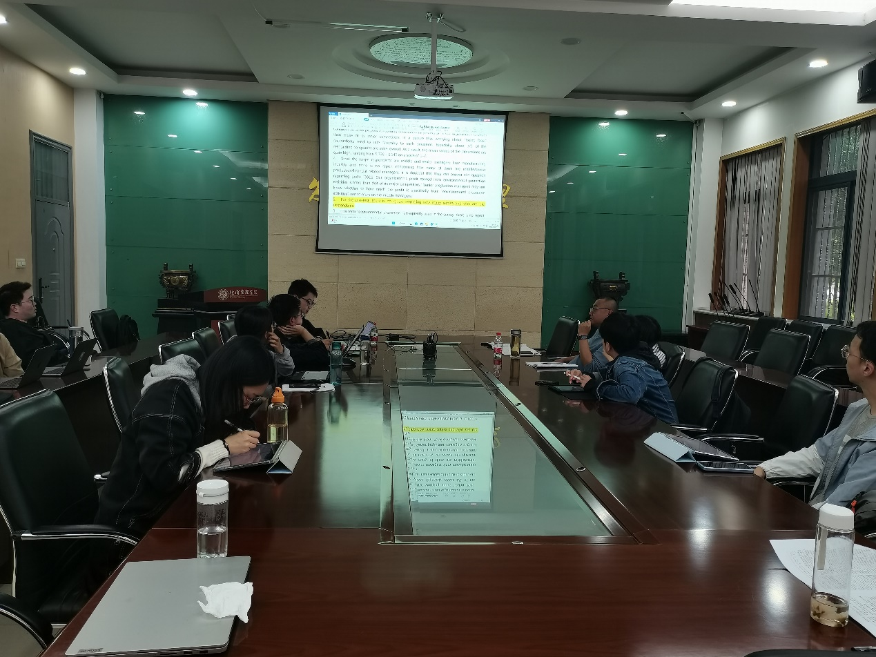 2023年5月10日下午,冰球突破豪华版官方网站研究生论文工作坊第五讲在长安校区8106会议室举行。2021级工商管理博士研究生杜可分享了与导师陈关聚合作的文章《Environmental legitimacy through green intellectual capital:accessing the mediating role of digital transformation》,冰球突破豪华版官方网站王凤教授和杨春江教授应邀点评。