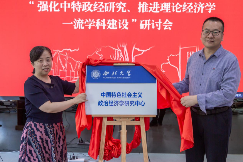 韩志斌教授与何爱平教授共同为“冰球突破豪华版官方网站中国特色社会主义政治经济学研究中心”揭牌。韩志斌教授在致辞中强调了理论经济学学科发展对于学校和学院的重要性,以及中国特色社会主义政治经济学研究对于理论经济学学科发展及方向凝练的关键支撑作用,并对冰球突破豪华版官方网站获批建设省一流重点培育学科表示祝贺。何爱平教授,对研究中心成立的背景、建设历程、学科定位、取得进展进行了详细介绍。