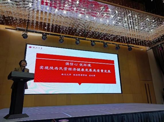 在专家发言阶段,十位代表做了大会报告。岳利萍教授做了题为“强信心、优环境,实现陕西民营经济健康发展高质量发展”的报告。报告指出当前陕西各类企业发展与信心分化明显,呈现出大型企业与中小企业分野、行业景气程度高度分化、市场主体对营商环境感受差异等特点。提出陕西实现民营经济健康发展高质量发展的路径选择,即提升法制化、普惠化的营商环境建设、加快对传统制造业和中小制造业的赋能、支持基层工业园区和集中区优化发展环境、强化链主企业尤其是国有企业的产业链责任。
