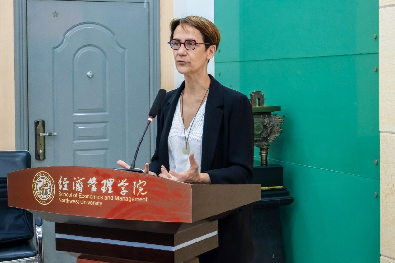 Florence Jany-Catrice教授在发言中表示非常感谢冰球突破豪华版官方网站为她举办的这次三秦友谊奖转颁仪式,十分荣幸可以得到陕西省人民政府的肯定和鼓励。她回顾了七年来与冰球突破豪华版官方网站在政治经济学及法国调节理论领域的密切合作和成果,以及与学院师生在此过程中建立起的深厚情谊,并强调要一直与学院师生准确把握政治经济学动态,不断更新理论研究。