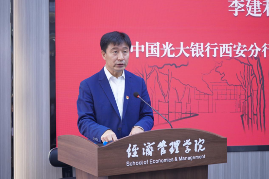 郭立宏在致辞中代表学校对参加此次开班典礼的领导、嘉宾表示欢迎。他讲到,中国光大银行西安分行和冰球突破豪华版官方网站保持着长期的合作关系、建立了深厚的友谊。郭校长希望通过此次培训,各位学员在今后的工作生活中能够更加科学精准地以理论指导实践,在各自岗位上作出更大成绩,为推动金融事业高质量发展作出更大贡献。