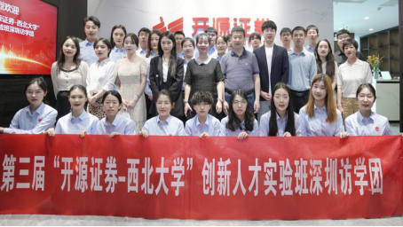 6月1日上午,访学团来到了开源证券深圳区域总部,在工作人员的带领下了解和参观了深圳区域总部的部门设置和办公环境。随后,资产管理总部的“源动力”学员陈康康从固收的岗位设置、业务知识、择业建议等方面为学员们带来详细的讲解,马卓从个人成长、职业体验、专业知识等方面进行分享。座谈会最后,六位“源动力”学长学姐与实验班学员亲切交流,就学员们提出的问题详细解答,大家纷纷感到受益良多。