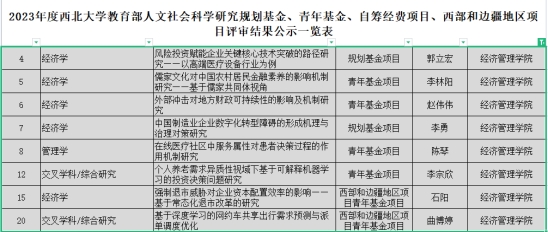 近日,教育部社科司公示了2023年度教育部人文社会科学研究规划基金、青年基金、自筹经费项目、西部和边疆地区项目评审结果,冰球官网教师共获批8项,其中规划基金2项,青年基金4项,西部和边疆地区项目2项,立项数创近年来新高,学院特向各位获准立项的老师表示祝贺!
