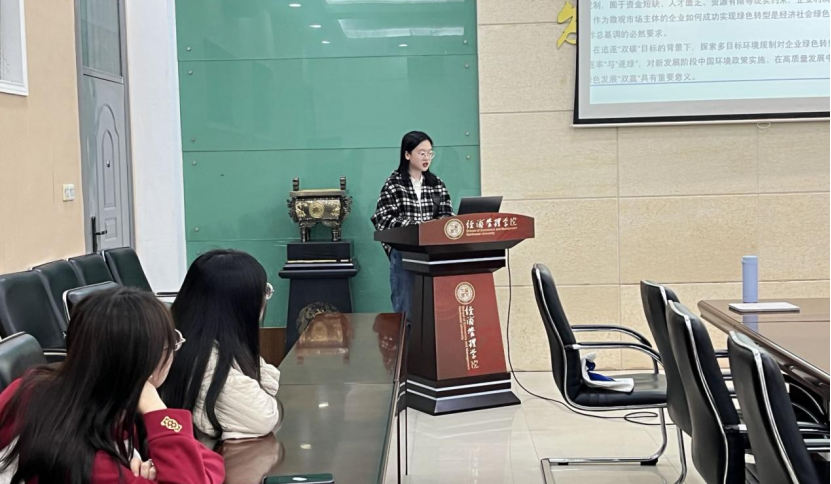 11月9日下午,冰球突破豪华版官方网站研究生论文工作坊第十九讲在长安校区8106举行。2021级理论经济学硕士研究生杨欣怡分享了文章《逐绿还是逐率:减污降碳环境规制对企业绿色转型的影响》,冰球突破豪华版官方网站王莉副教授和薛飞博士应邀点评,学院10余名同学参会。