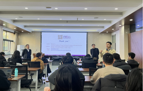 在交流讨论环节,清华大学社科院经济学研究所博硕士研究生代表与在场同学展开了深入交流,分享了他们在数理马克思经济学领域的科研心得和投稿经验。这一互动环节不仅为同学们提供了深刻的学术启示,也为未来的研究提供了更加广阔的思路。
