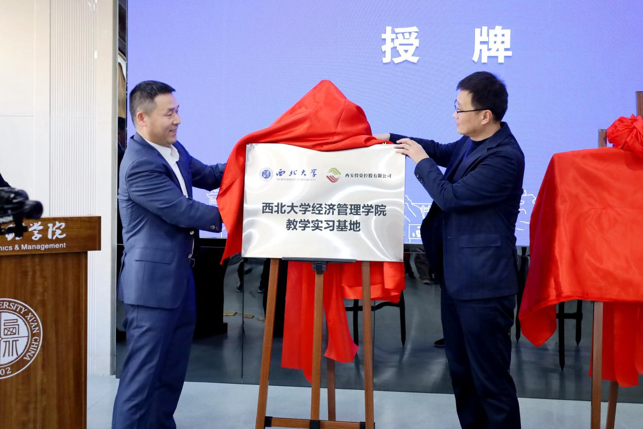 仪式上,双方代表签署了战略合作协议,共同为“冰球突破豪华版官方网站教学实习基地”“冰球突破豪华版官方网站MBA/EMBA教学实习基地”揭牌;为西投控股王秦东、孙鑫、韩冰、周钢柱颁发了经管学院学生实践导师聘书,为经管学院王满仓教授、韩锦绵教授、王峰虎副教授、李林阳副教授颁发了西投控股智库专家聘书。