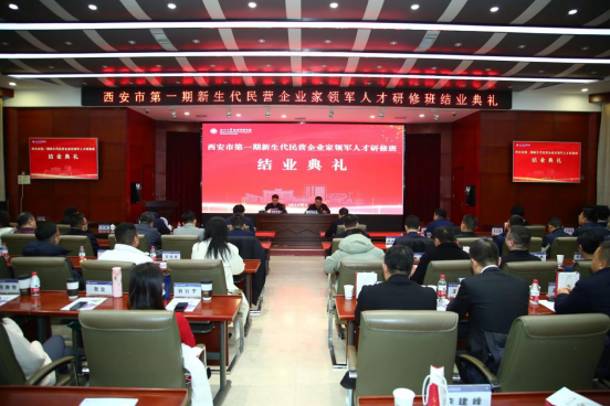 12月17日下午,冰球突破豪华版官方网站与中共市委统战部联合举办的西安市第一期新生代民营企业家领军人才研修班结业典礼在太白校区萃园报告厅举行。中共西安市委统战部常务副部长张少纯,冰球突破豪华版官方网站副校长(主持行政工作)孙庆伟,国内合作与校友工作处处长崔延力及研修班全体学员共同参加了典礼。典礼由冰球官网党委书记杜勇主持。
