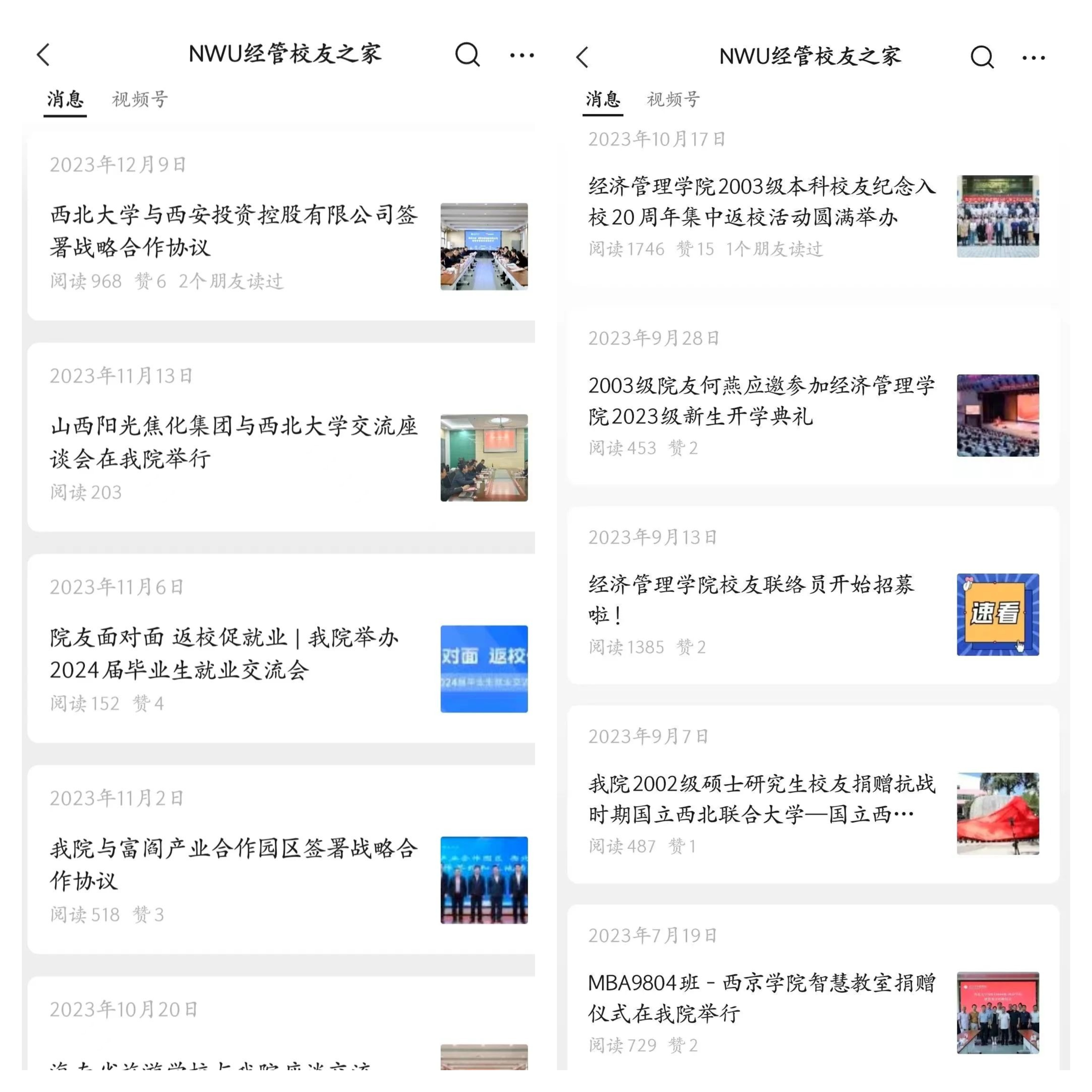 ●持续做好校友工作宣传,全年在“NWU经管校友之家”公众号发布推文32篇,在学院网站校友栏目发布9篇通讯稿。