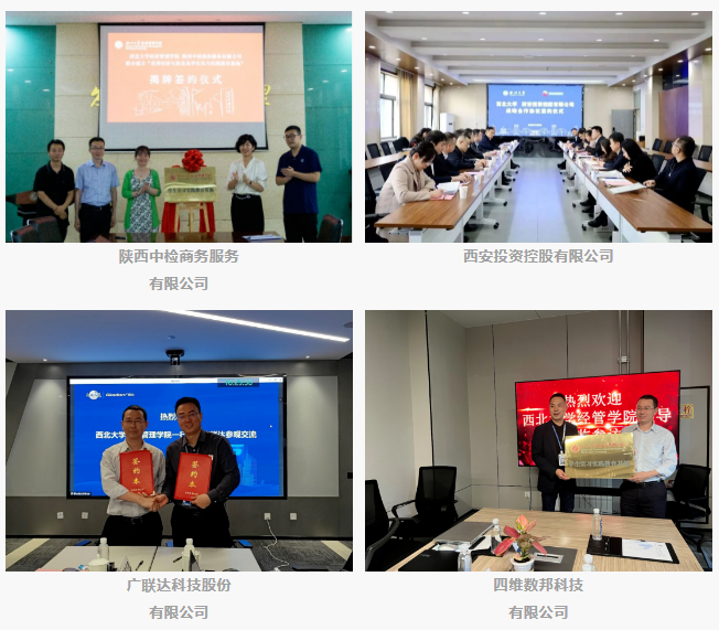 与中国光大银行西安分行、西部机场集团、西投控股、富阎产业合作园区、敦煌文旅集团、神木市文旅产业集团等18家单位签约合作协议,挂牌教学实践基地。推进与山西阳光焦化集团、海南省旅游学校等校企合作。