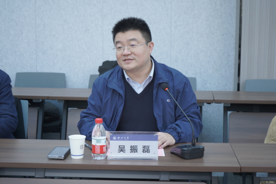吴振磊首先向西安市金融工作局、国研智库、北京腾景大数据科技研究院、朱雀股权投资管理有限公司对学校事业发展的支持表示感谢。他指出,西安产业·金融研究院的任务就是将西安市金融工作局的政策支持与指引、朱雀股权的投资研究和实践优势与我校优势学科和丰富资源有机融合、相互赋能,进一步撬动校政企社优质资源,为西部和陕西提供有特色、有温度、有深度的智库支持与服务。