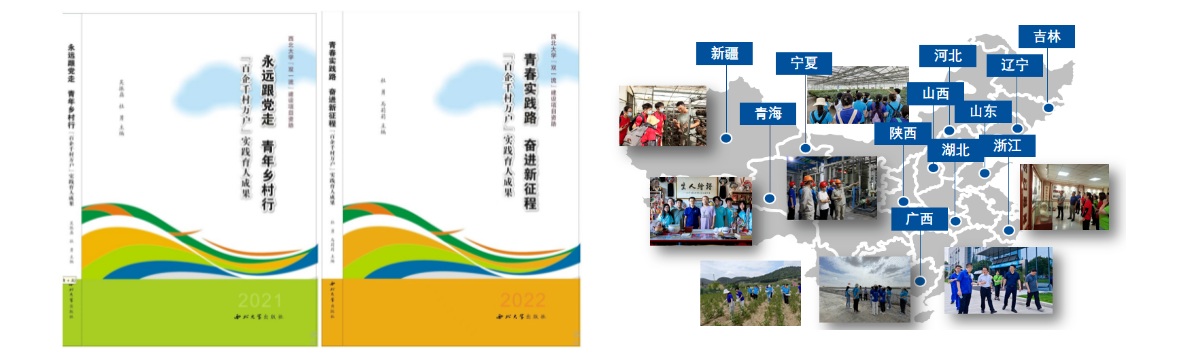 2023 年以“学习二十大 永远跟党走 奋进新时代”为主题,组织59 支团队 450 名学生,由 64 名教师带队,前往陕西、北京、重庆、内蒙古黑龙江、甘肃等 16 个省 (自治区、直辖市) 35 个市 43 个区 (县) 和 124 个村102 家企业开展实践。2021年《永远跟党走,青年乡村行》和2022年《青春实践路,奋进新征程》2本实践育人成果出版。