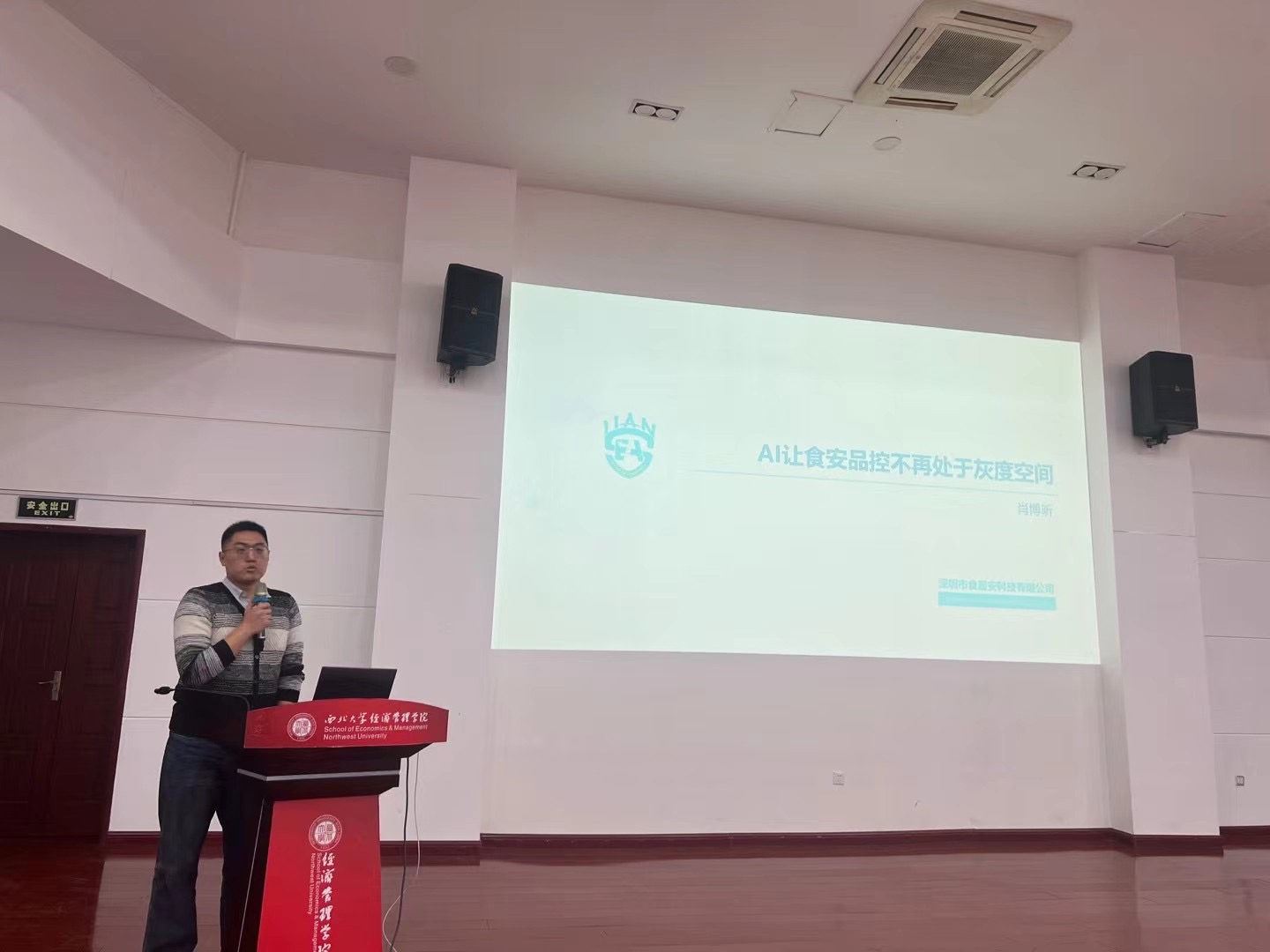 第四场讲座邀请了食易安产品总监肖博昕,他向同学们介绍了企业产品创新的底层逻辑及技术支持,对AI应用的发展趋势进行介绍,并对视频AI在校园安全、智慧社区、智慧工业以及食品行业的介绍。