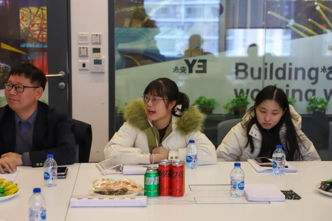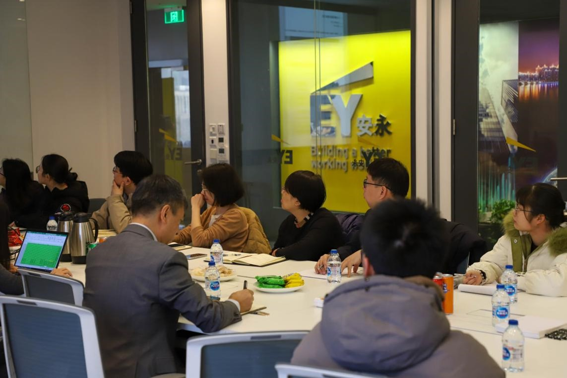 在安永会计师事务所会议室,冰球官网师生与安永会计师事务所业务单位及人力资源部门展开了深入交流。首先,安永的古经理就事务所的机构设置、业务类型以及监管合作情况进行了详细的介绍。安永会计师事务所是一个拥有审计、咨询、税务等多项业务,国际信誉和知名度极高的国际会计师事务所。安永会计师事务所采用全球一体化的独特业务模式,针对不同地区灵活调配专家,对客户采用就近服务的原则,其别具一格的内部制度优势使得安永会计师事务所的服务质量显著高于行业内其他公司,从而获得了巨大对外竞争优势。在大数据时代,安永会计师事务所也在积极主动地拥抱变迁,除全面推进电子化办公外,还建立了自己的数据处理系统,借助大数据、互联网转移部分重复性机械工作,使得会计专业人员工作效率得到了显著提升,员工的时间得到了有效平衡。此外,安永会计师事务所还利用大数据提升风险把控能力,极大地降低了业务风险。