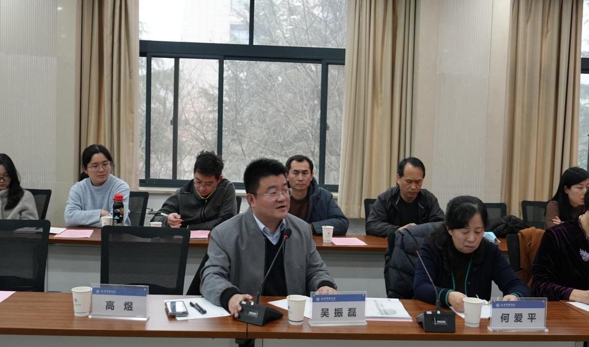 最后,副校长吴振磊教授就学院学科发展和学位点建设做总结讲话,他首先肯定了本次工作推进会召开的必要性和意义,指出学校科研成果分析中经管院所暴露出来的问题和挑战。围绕“认清形势、提高站位”,“聚焦短板、自我革命”,“凝心聚力、团结奋斗”,他勉励全院师生认真领会并贯彻落实学校十四次党代会、十二届教代会、2024年本科教学工作会议、2024年科研工作会议精神,紧抓时代机遇,携手努力奋进,共同为学科建设、学院发展贡献力量。