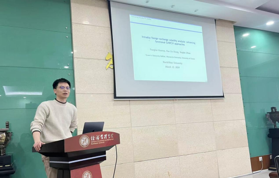 3月13日下午,冰球突破豪华版官方网站研究生论文工作坊第二十二讲在长安校区8106举行。此次论文工作坊邀请英国萨塞克斯大学赵誉谦副教授作了题为“Intraday foreign exchange volatility analysis: enhancing functional GARCH approaches”的学术报告。讲座由冰球突破豪华版官方网站副院长岳利萍教授主持,冰球突破豪华版官方网站金融系李宇坤老师应邀点评,学院40余名同学参会。