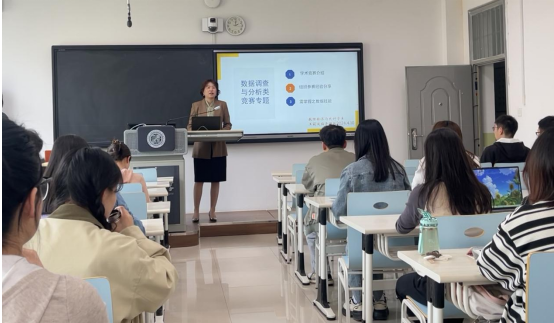 在讲座环节,王莉老师首先强调了在当前数字经济背景下,数据是数字时代新质生产力发展的关键要素,鞭策同学们要掌握数据收集和分析的技能。接着,王莉老师重点介绍了全国市场调查与分析大赛和全国大学生统计建模大赛的概况,鼓励在场同学们积极参加,借此孵化小论文甚至毕业论文。最后,王莉老师通过介绍不同的数据调查与生成方法、推荐实用的数据可视化工具、梳理经典的计量模型以及人工智能和大语言模型,帮助参会同学构建知识框架、明确学习方向。通过此次讲座,相信与会同学对市场调查大赛和统计建模大赛有了更深地了解,对备赛有了更详细的规划和信心。