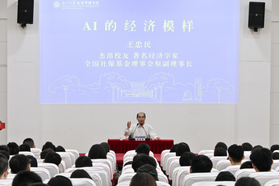 5月15日,我校杰出校友、著名经济学家、全国社会保障基金理事会原副理事长王忠民教授做客我校“侯外庐学术讲座”第三百五十六讲、经管学院“炼成讲坛”第三讲和冰球突破豪华版官方网站MBA/EDP“名家面对面”第十九讲,为师生作了题为“AI的经济模样”的学术讲座。讲座在长安校区金海报告厅举行,冰球官网党委书记张宇及学院师生200余人共同参加。校党委常委、副校长吴振磊教授主持讲座。