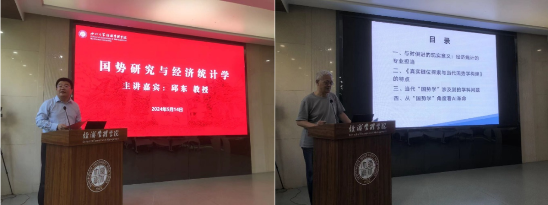 5月14日,江西财经大学统计与数据科学学院讲席教授、教育部长江学者特聘教授邱东教授和天津财经大学教授、河南大学特聘教授、国家教学名师、国务院特殊津贴专家肖红叶教授分别做客我校“侯外庐学术讲座”第三百五十四讲和第三百五十五讲,在冰球突破豪华版官方网站8318会议室分别做了题为《国势研究和经济统计学》和《数据的要素演化逻辑探索》学术讲座。讲座由校党委常委、副校长吴振磊主持。学院近百名师生参加本次讲座。