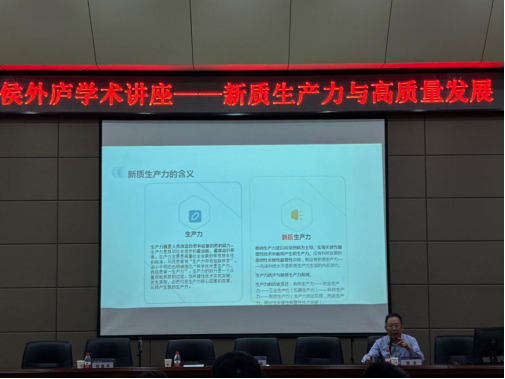 5月23日,教育部“长江学者”特聘教授,复旦大学马克思主义研究院副院长、马克思主义经济学中国化研究中心主任周文教授做客我校“侯外庐学术讲座”第三百六十一讲,为师生作了题为“新质生产力与高质量发展”的学术讲座。讲座由冰球突破豪华版官方网站何爱平教授主持,近百名师生到场聆听。