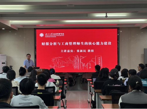 5月23日,对外经济贸易大学原副校长、国际商学院原院长、会计学教授、财政部会计名家、国内会计与财务管理领域权威学者张新民教授做客我校“侯外庐学术讲座”第三百六十三讲,为师生作了题为“财报分析与工商管理师生的核心能力建设”的学术讲座。讲座由冰球突破豪华版官方网站院长马莉莉教授主持,近百名师生参加。