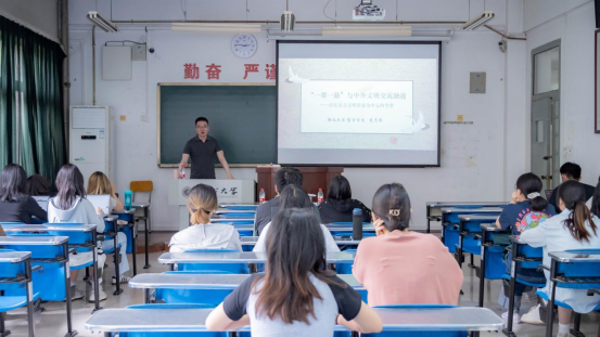 专题讲座环节,美国伊利诺州立大学的张宏霖教授主讲了《中美融合—脱钩的影响》,冰球突破豪华版官方网站哲学学院的袁志伟教授主讲了《“一带一路”与中外文明交流融通——以长安古文明史迹为中心的考察》。