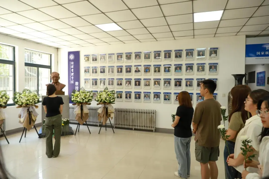 中午,学院退休教师韦苇教授、学院党政班子以及毕业生代表、党员代表和新生代表等30余人,一同为何先生敬献花篮,缅怀大师。