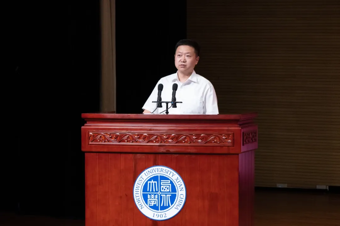典礼第七项:院友代表发言。院友代表西安市发展和改革委员会党组成员、副主任王凯深情回顾了自己在西大的求学时光和自己毕业之后的奋斗历程,他以个人发展与时代之变为题,讲述了如何在宏观经济环境变化下推动个人发展,勉励2024届毕业生要紧握时代机遇,开拓美好人生。