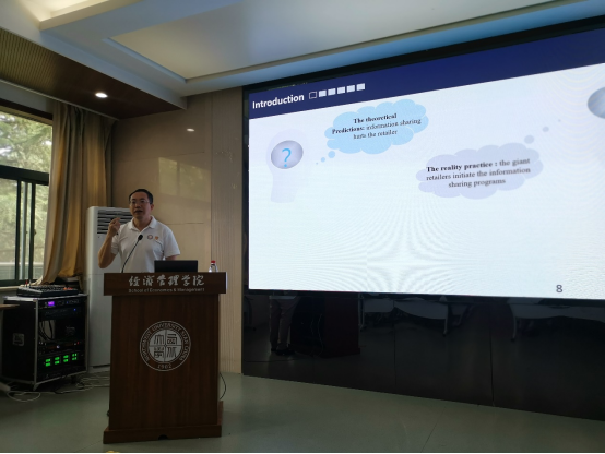佟教授与大家分享了团队的最新研究,即在由一家制造商和一家零售商组成的供应链中,信息共享激励与权力结构之间的相互作用。该研究基于两家公司定价决策序列的三种权力结构——制造商-Stackelberg博弈(博弈M)、垂直Nash博弈(博弈V)和零售商-Stackelberg博弈(博弈R),研究了权力结构对零售商信息共享决策的影响。研究发现:当零售商在供应链中占主导地位时(博弈R),零售商有动力共享信息;当制造商占主导地位(博弈M)或两家公司具有同等定价权(博弈V)时,零售商倾向于不与制造商共享信息。该研究还分析了企业作为领导者首先做出决策时是否具有先发优势的问题,发现在信息共享的情况下,先发优势始终存在。如果不共享信息,由于博弈R中的决策失真,作为领导者首先做出决策可能会导致绩效不如其他决策序列。