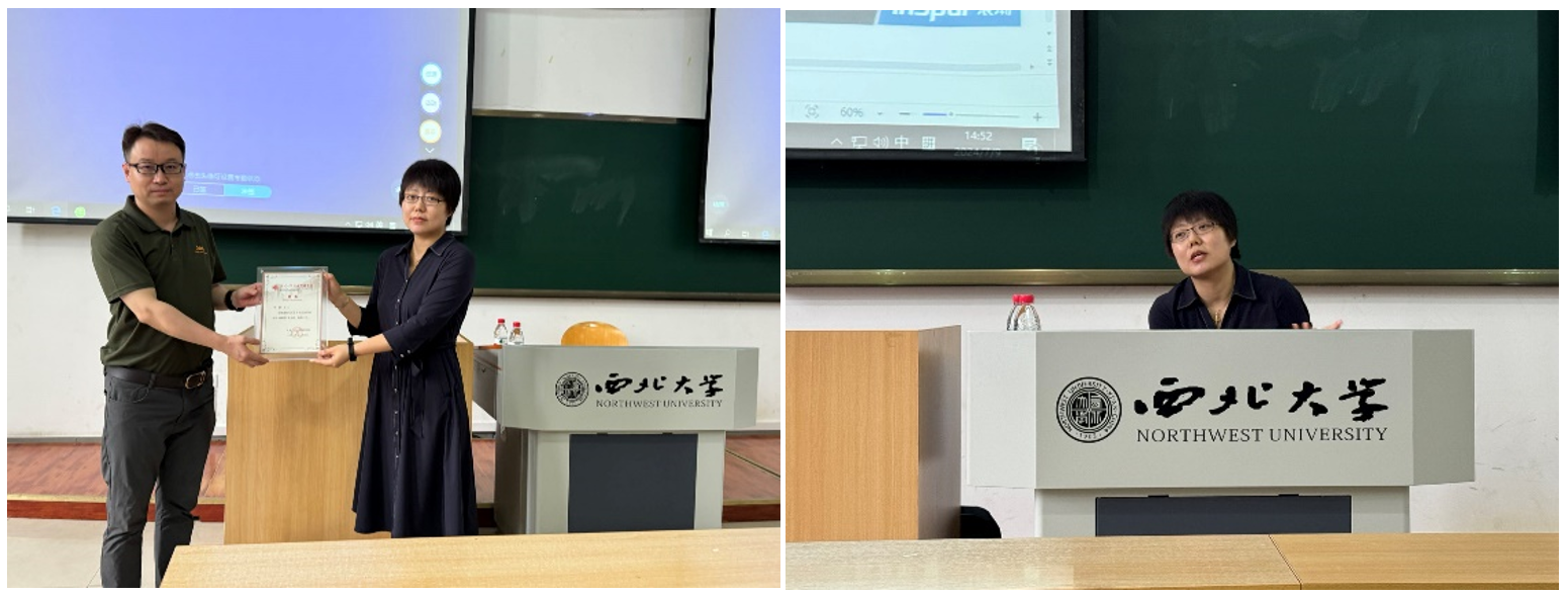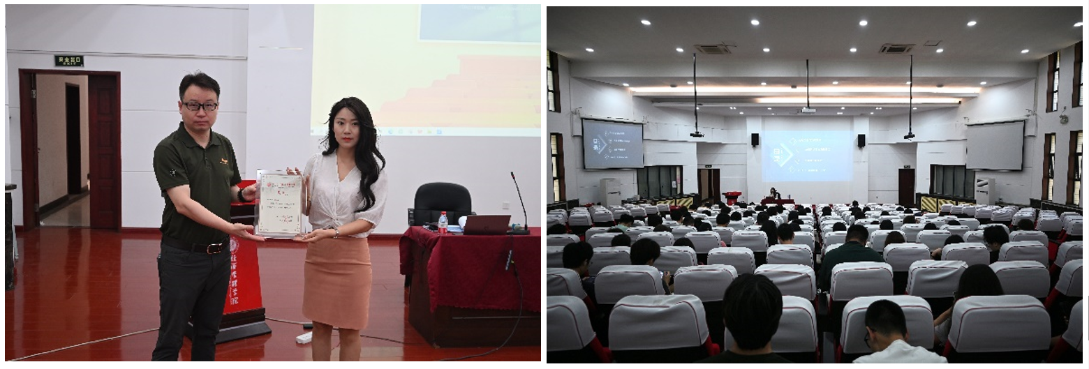 来自浪潮云资深专家田甜女士从介绍浪潮公司发展历程开始,分享了数智时代科技赋能以及人工智能“大模型”,最后以汉中市某工程项目为典型案例向同学们介绍科技赋能的实际应用。在数智时代,对数据的治理显得尤为重要。田甜介绍了数据平台产品体系涵盖了数据库、大数据、数据治理、区块链等方面,使得同学们对数智时代前沿科技及应用加深了认识。上图一为高鹏老师给田甜女士颁发“冰球突破豪华版官方网站实践周行业导师”证书。