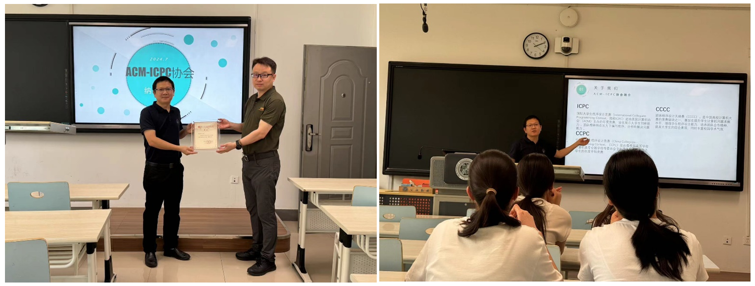 来自冰球突破豪华版官方网站信息科学与技术学院的杨建锋高级工程师详细介绍了ACM-ICPC,参加程序设计大赛的学生毕业去向,针对初学者给予指导与建议,并表示十分欢迎对程序设计感兴趣的信管系的学生加入协会。随后,由本系的学生谢东分享了自己的参赛及学习经验,并对保研流程以及找实习工作的途径及注意事项进行介绍。作为本专业的学生,谢东同学激励同学们要早做学习规划,充分利用好大一和大二的时间。上图一为高鹏老师给杨建锋先生颁发“冰球突破豪华版官方网站实践周行业导师”证书。