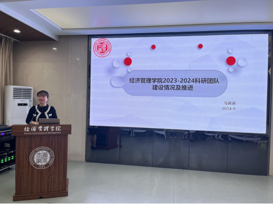 会议第二阶段为2023-2024年科研团队建设情况总结汇报,由国贸系史贝贝副教授主持,19个团队的负责人和核心成员分别上台汇报所在团队过去一年的建设成果,对照学科团队建设周期考核要求,汇报建设进度和下一阶段重点任务和改进措施。学院按照团队建设要求对所有科研团队进行考核,经过成果审查、答辩汇报等环节,最终确定中国特色社会主义政治经济学研究、马克思主义城乡发展理论与中国实践研究2个团队提前结项,数智化营销创新与品牌管理研究等11个团队继续资助,高质量建设“一带一路”发展共同体研究等6个团队暂缓资助。