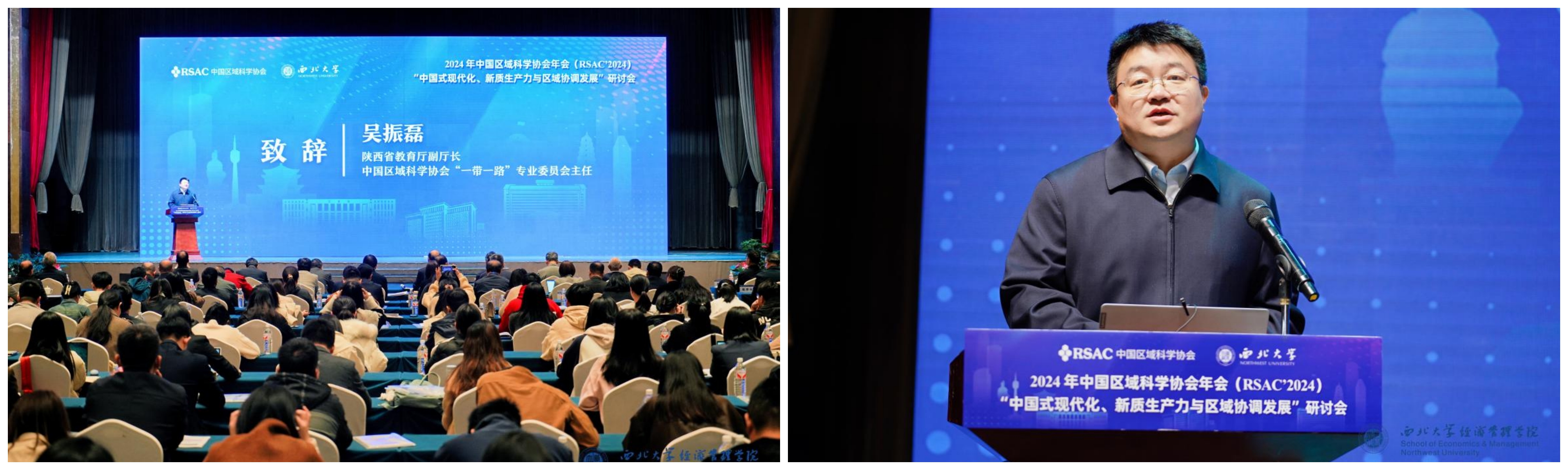 吴振磊在开幕式致辞中表示,陕西省教育厅对2024年中国区域科学协会年会的召开表示热烈祝贺,并诚挚欢迎来自全国各地的专家学者、青年才俊齐聚冰球突破豪华版官方网站,共同为中国区域科学发展贡献智慧。他指出,陕西省拥有深厚的社科研究基础,冰球突破豪华版官方网站和冰球突破豪华版官方网站中国西部经济发展研究院更是理论经济学研究的西部重镇,本次年会的举办为西部地区的专家学者提供了宝贵的学术交流机会,有助于为发展中国区域科学贡献更多的真知灼见。